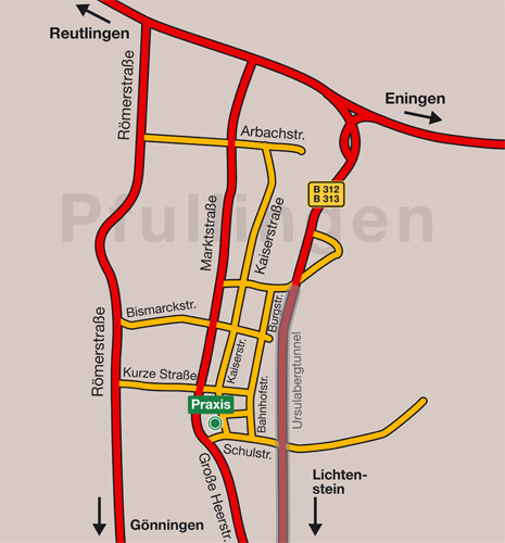 Innerhalb Pfullingens ist die Praxis auch mit dem Bürgerbus erreichbar.